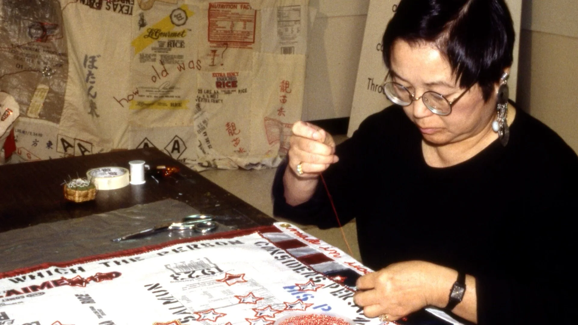 At 87, American artist Flo Oy Wong is still seeking and finding beauty in all aspects of her artful life. Ever curious, Wong continues to blaze her own path, conjuring change, both for her community and for herself. She speaks through walls, dripping canvases and mended fabrics, inviting all to see the light and the poetry in possibility.